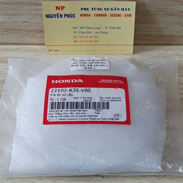 Nhôm cánh quạt AB 125, SH Mode, PCX 14, AB 20 , Vario 125, 150, Lead 125 đời 13, 20 zin ( K35 ) ( 14*116*23 )